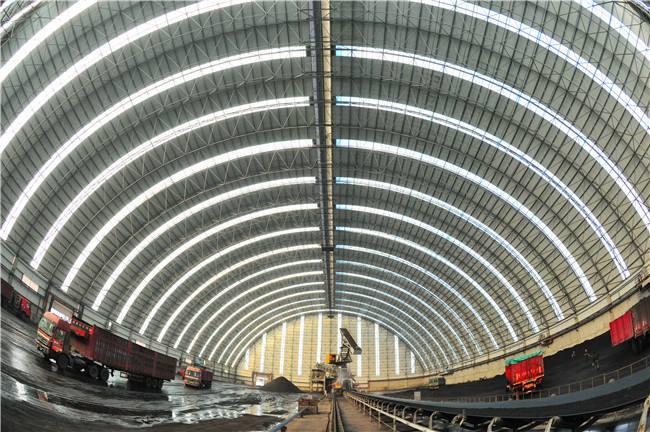 堆场料场封闭式主体结构为新型的钢安陆网架结构,维修结构为安陆钢结构安陆不锈钢板和纤维增强塑料灯具,其外形以安陆网架式和平板为主,连接柱安陆施工自由,设置喷雾自动喷水系统,从而可以实现棚内所有物料的覆盖,减少物料在运输过程中的损耗,起到防尘的作用,减少工厂关闭后的二氧化硫排放量,50mg/m3颗粒排放量小于10mg/m3,非常适合低能耗。低闭库自动感应反应对库存轮胎进行清洁,确保轮胎不受道路污染;封闭的储存区可从源头控制粉尘污染,控制无序排放。